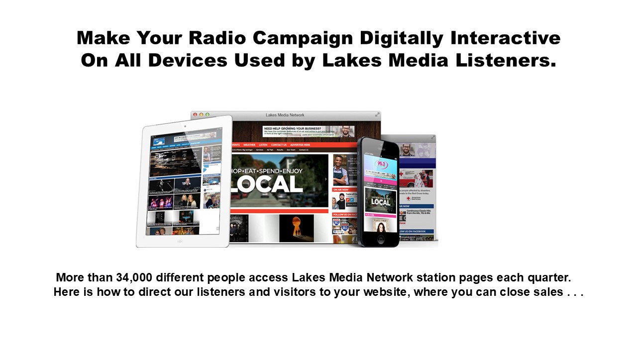 The Lakes Media Network has tens of thousands of engaged listeners waiting to hear and act on your message!